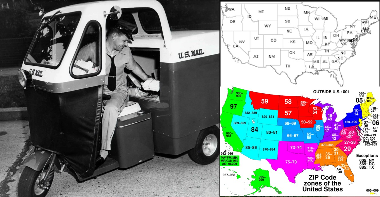 On July 1st, 1963, the US Postal Service introduced a new plan for the sorting and delivery of mail to make it quicker and more efficient. The plan improved the zone scheme used at the time, which added a two-digit number to the address coinciding with the sorting center closest to the recipient. The system wasn’t all that helpful, but using even more digits was impracticable because of the length it would add to the last line of the address.