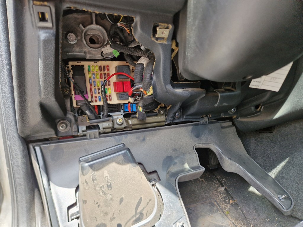 By now, late evening, I felt like I was being swarmed by mosquitos as I spliced the new unit’s connector into the car’s wiring and plugged in the stereo to connect its 12v inputs directly to the car’s power supply. Still nothing. Either I had a defective stereo or there was more to this car than I’d anticipated. Already scratching my mosquito bites, hot and sweaty from the heat, I called it a night. I’ll try again tomorrow.