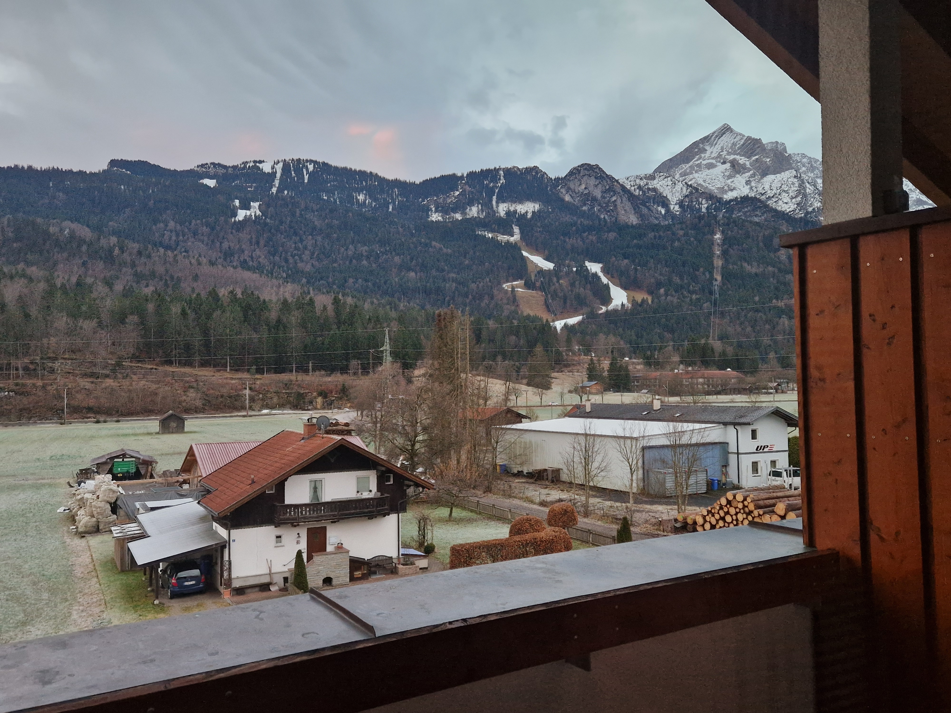 Ironically (I think), this Renault van is called a Trafic. We were literally stuck in Trafic for the almost ten-hour drive from Naples to the Edelweiss resort in Garmisch-Partenkirchen. It was a lovely drive, though dark by the time we hit the mountains in Northern Italy, but we crossed some historic rivers (the Tiber and the Po), and it was my first drive across international borders in Europe. This latter turned out to be, thanks to the European Union, much like crossing state borders back home. Rather uneventful. In fact, there aren’t even large welcome signs to let you know you’re crossing a border, just small EU markers on the side of the road that are easy to miss.