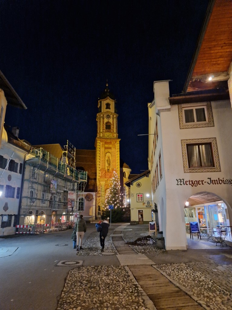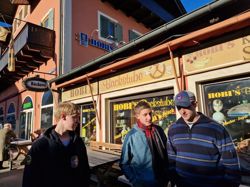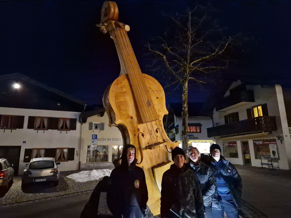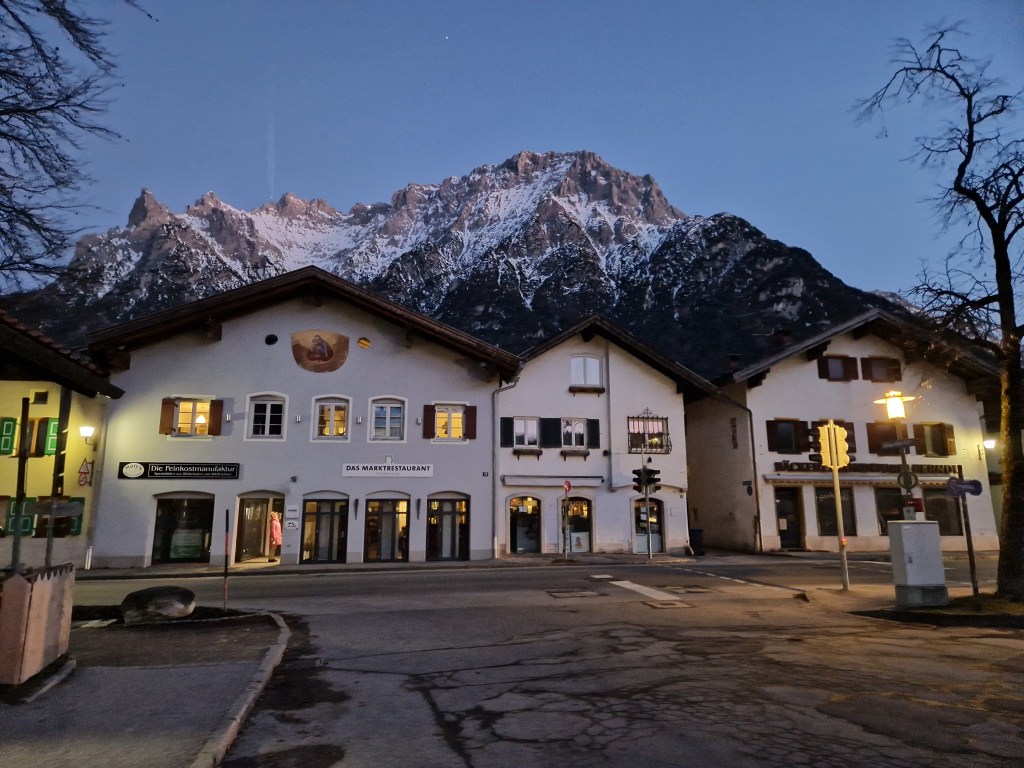 We planned on having dinner at the hotel, they serve a buffet every night and this evening was the southwest buffet, but on the way home we stopped to stroll around Mittenwald, a Bavarian town famous for making violins, violas, and cellos. We did some window shopping, some souvenir shopping, and enjoyed the chill in the evening air while admiring the Bavarian architecture of the village and each others’ company.