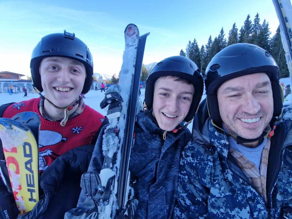The following day was the first big effort day. I took the boys skiing and Nora went on a tour of a local monastery (You’ll have to ask her about that trip). Our ski trip left the lodge early in the morning, and though there was no snow on the resorts own local slopes, they provided tickets for lifts to the mountaintop ski area which had plenty.
