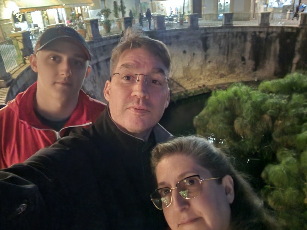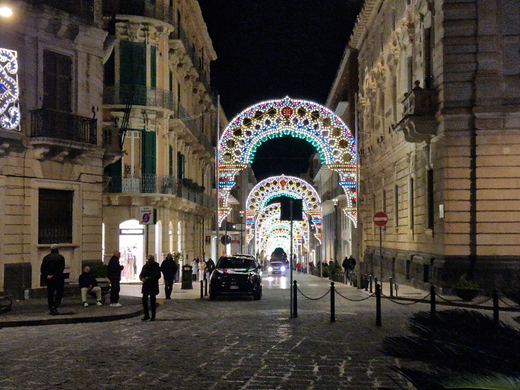 From there we walked back towards the center of the town to see the Fountain of Diana, which is lovely—especially lit up at night—and the streets radiating away from the circle of which it’s the centerpiece, were all still decorated with Christmas lights.
