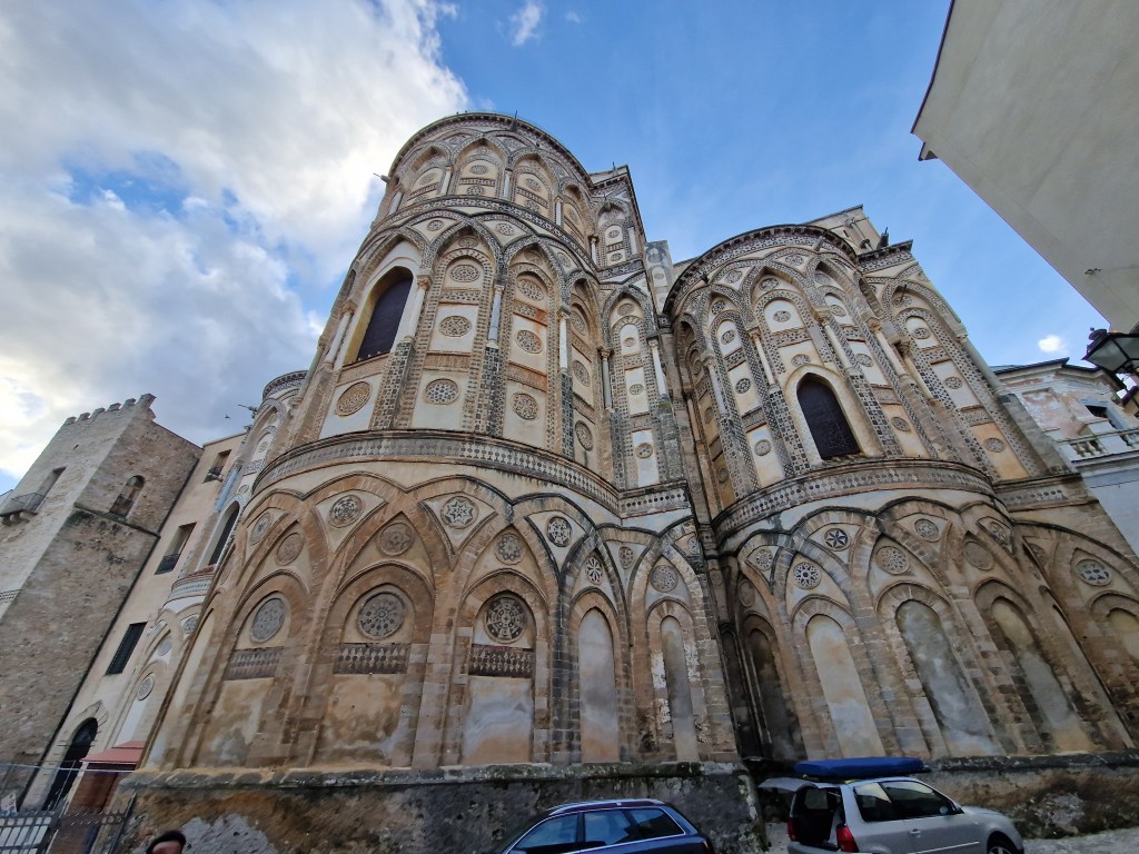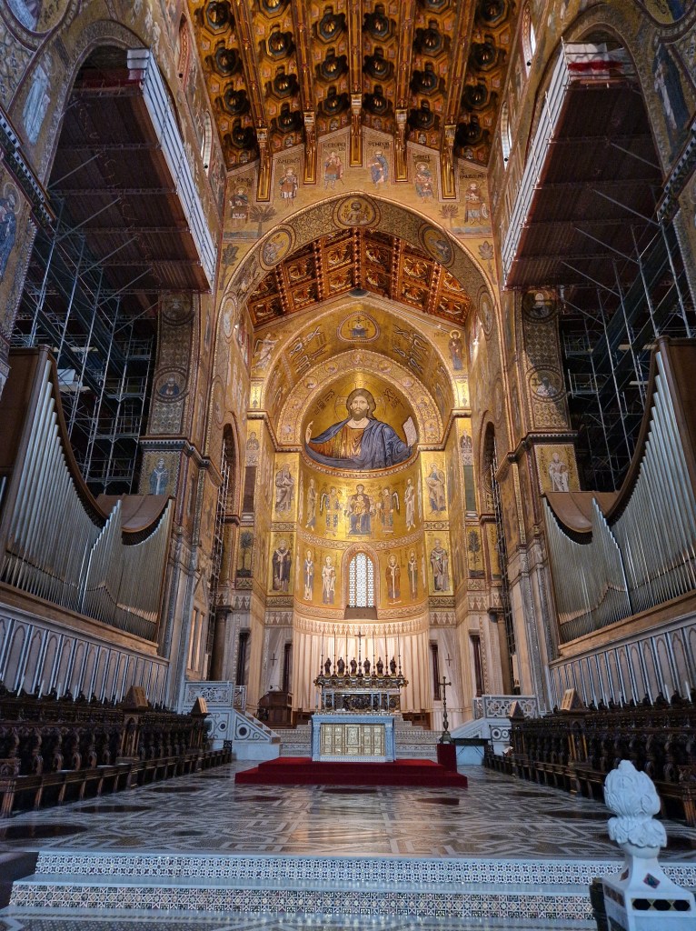 Outside of Palermo is a cathedral of Monreale, an 11th century Norman structure filled with more than 70,000 square feet of mosaic byzantine icons, cataloged here. With the afternoon sun shining in through the western windows, the apse lit up and was exquisitely beautiful. The ceilings of carved wood were also intricate and colorful, even the floor is beautifully made. Of all the cathedrals we’ve visited in Europe so far, this is one of my personal favorites.