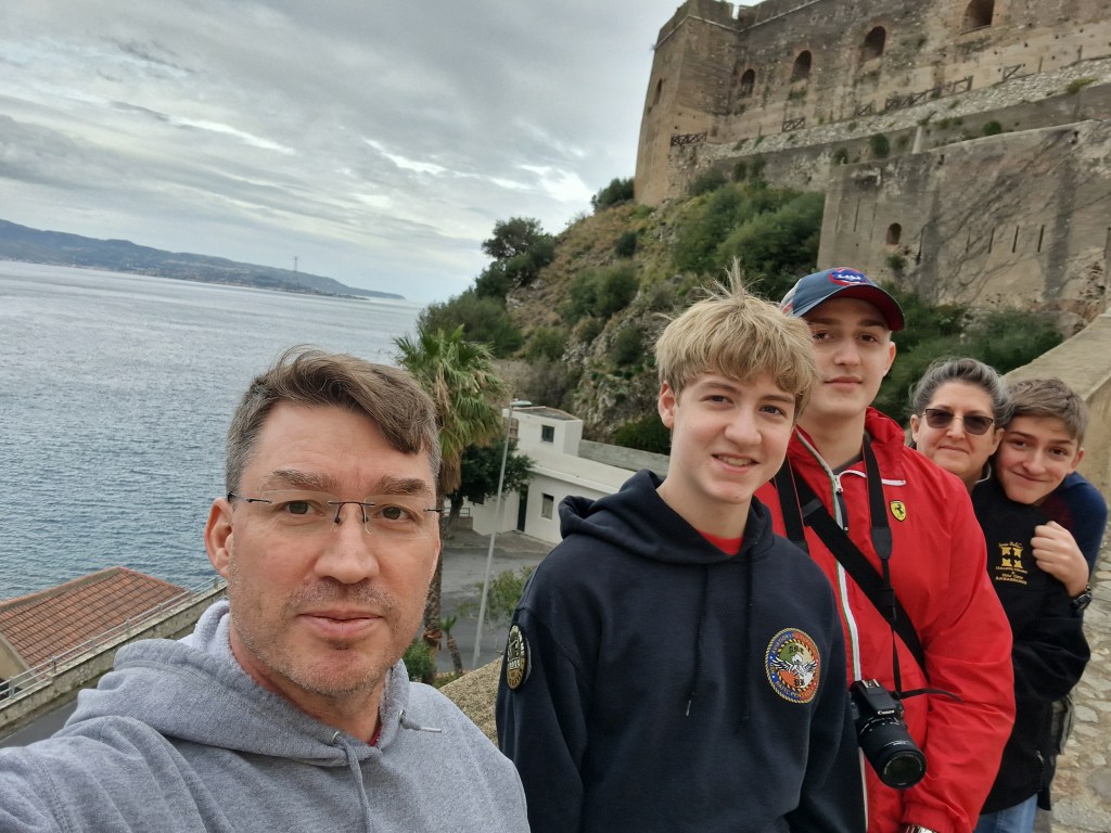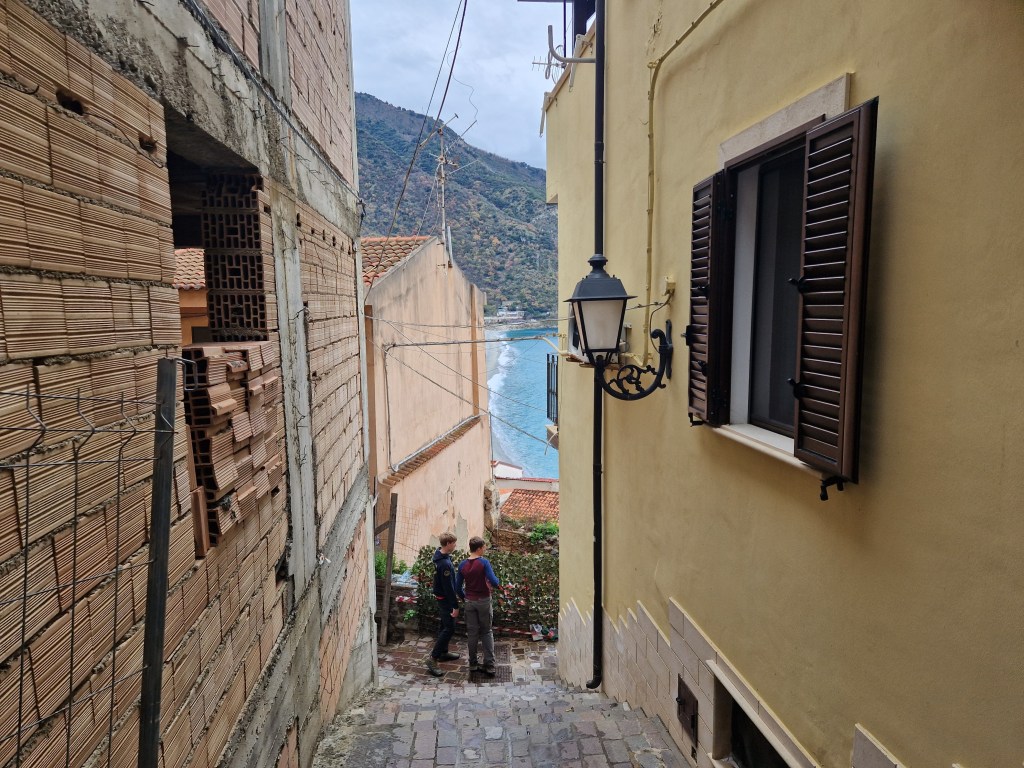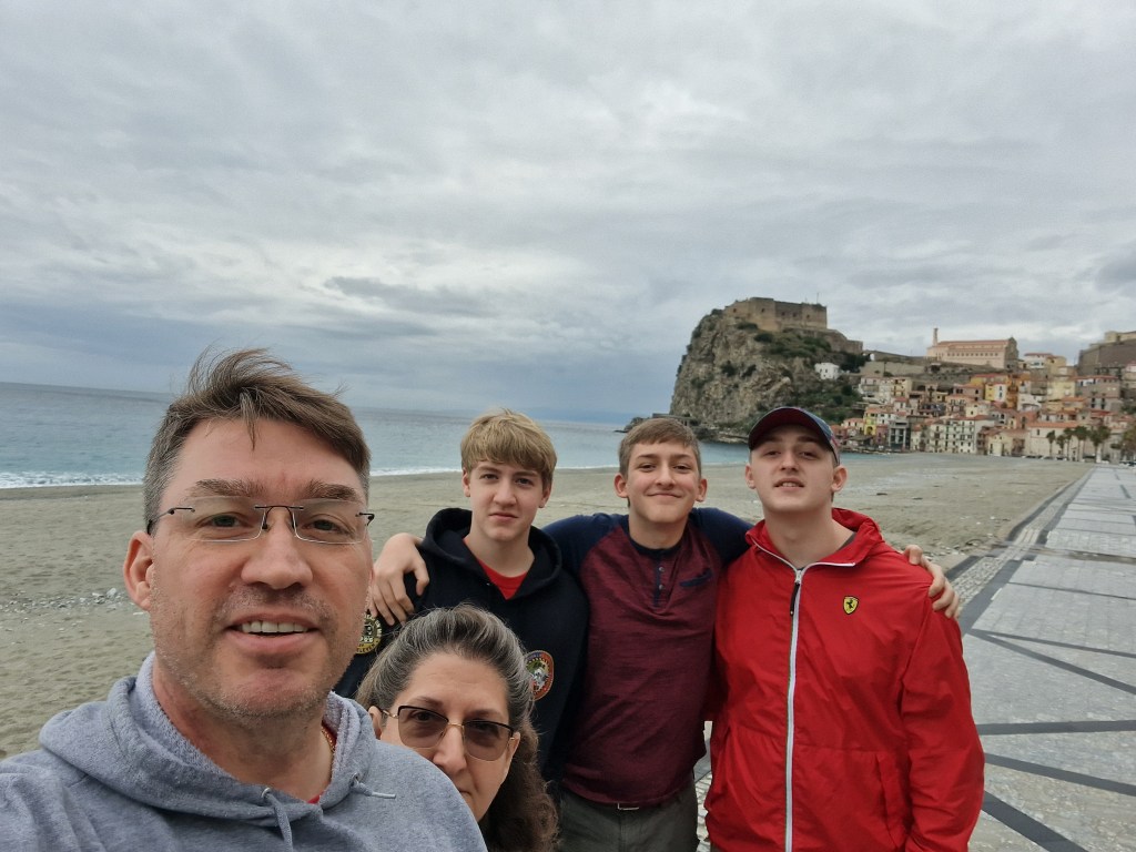 We got back to the hotel with enough time for a nice long sleep before waking early for the long drive back to Naples. On the way back we took a little detour through Scilla, to climb the infamous rock and look out across the Messina Strait for the Charybdis. We didn’t see it, but the view was amazing, nonetheless. We parked at the beachfront and climbed through the small cliffside town through narrow streets past homes accessible only by foot (or maybe an adventurous scooter) that would make bringing home the groceries better done daily than once a week. This way of bringing home the bacon is so pervasive here in Italy that even in on base housing our refrigerator is not large enough for a week’s worth of groceries. Having large teenagers in the house doesn’t help.